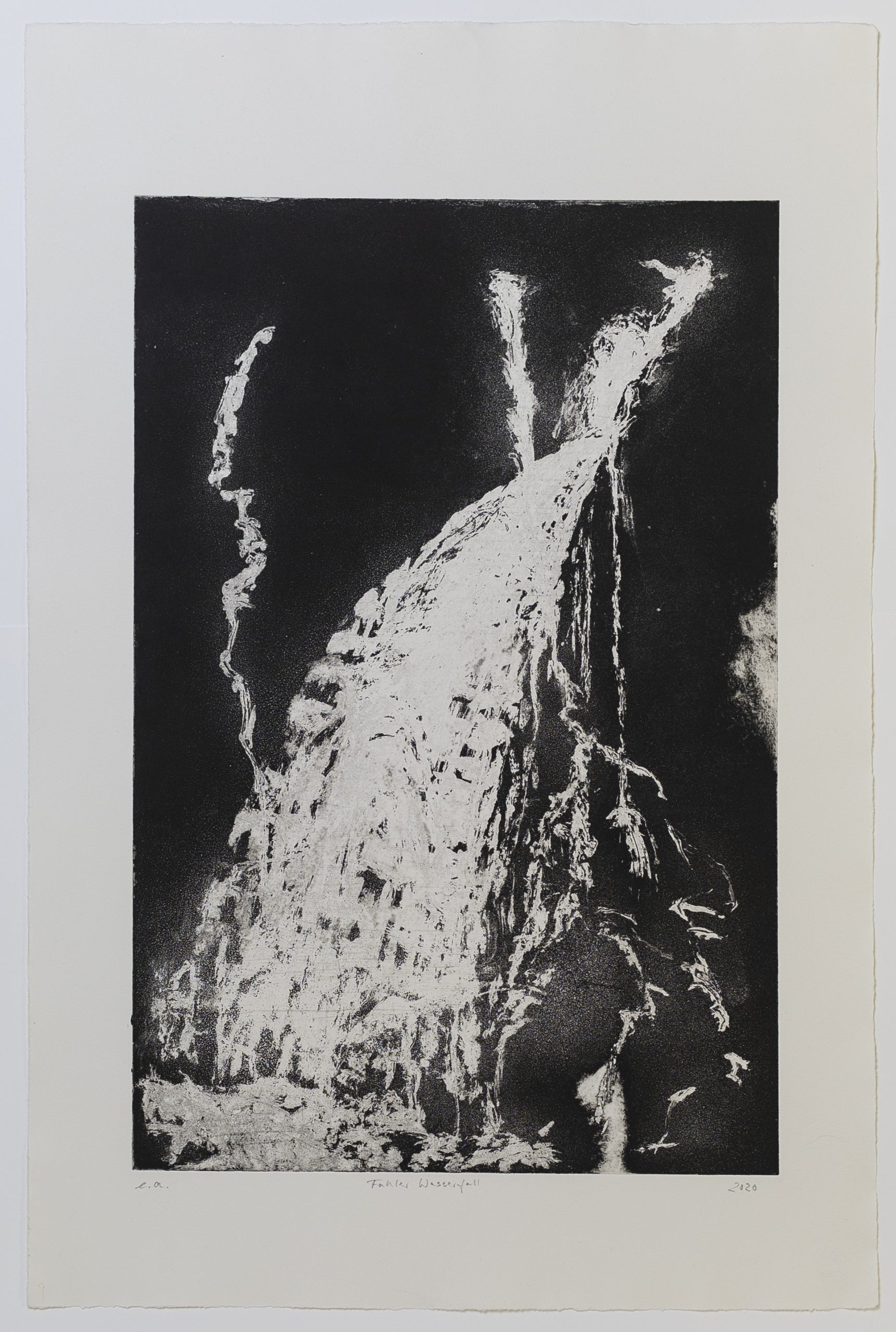 Fahler Wasserfall Radierung (Aquatinta/Kaltnadel), 2019, 79 x 54 cm